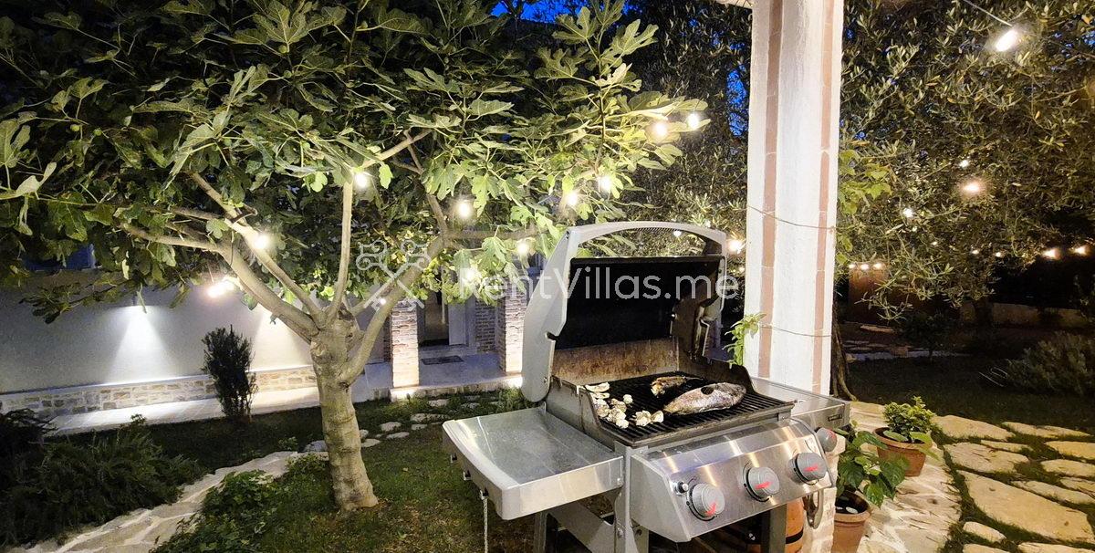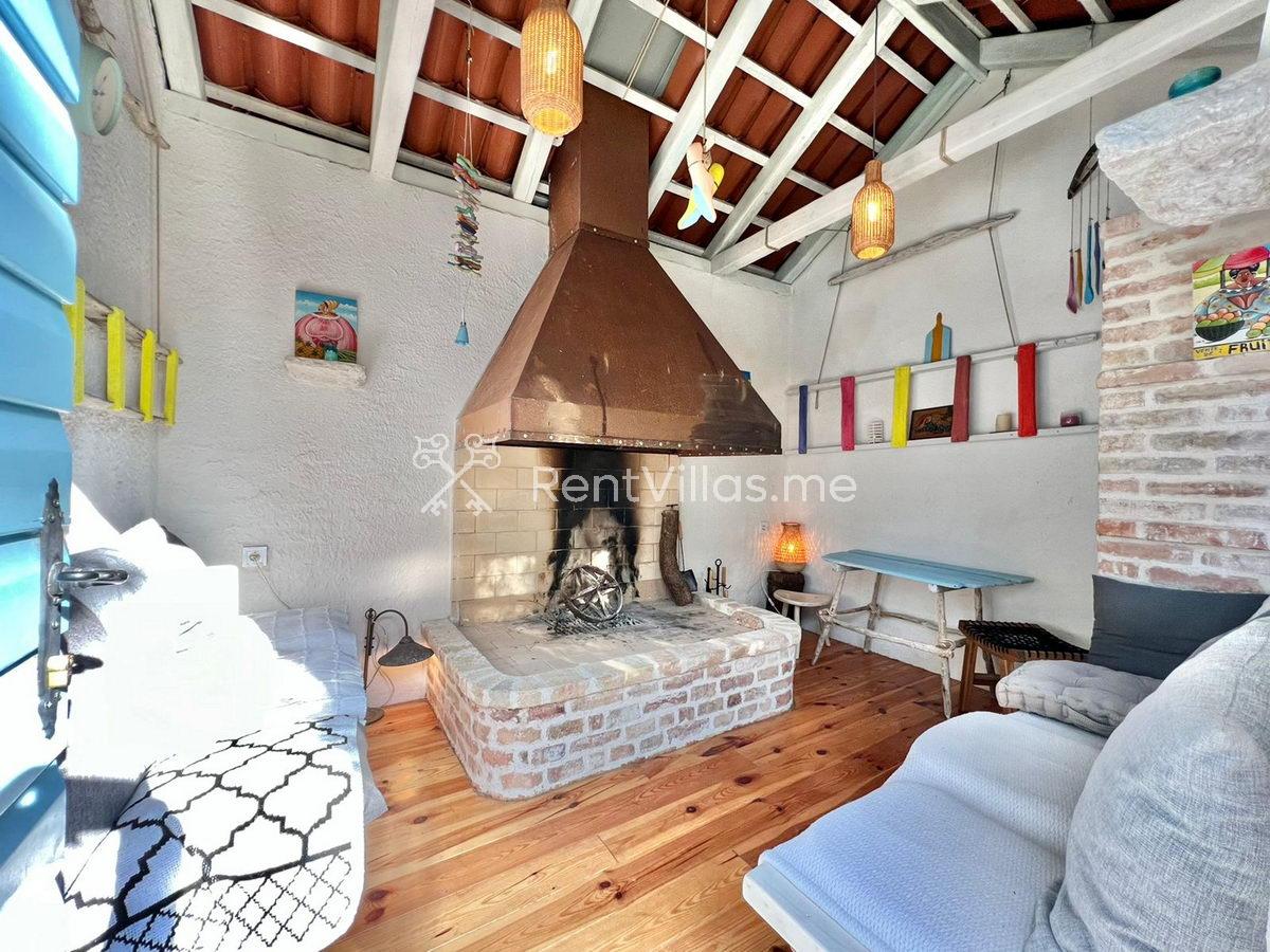 Outside, the villa keeps offering: a traditional hearth room for evening gatherings around the fire, a covered summer kitchen with its own fireplace, and several carefully placed outdoor dining and lounge areas. It’s almost a ritual to decide each day where to eat, sit, or simply watch the sky change colour.