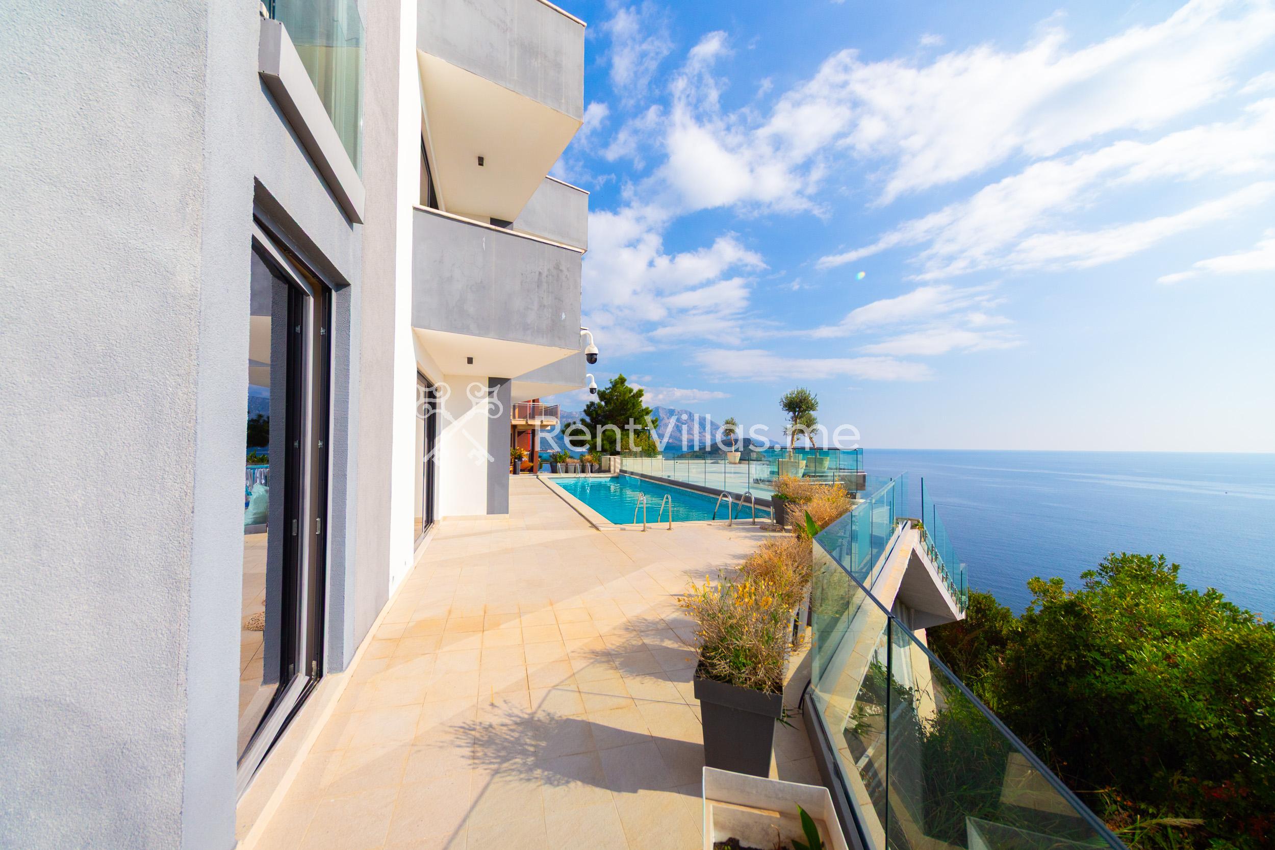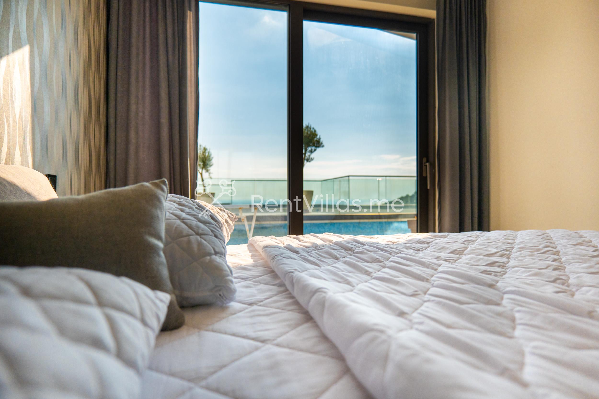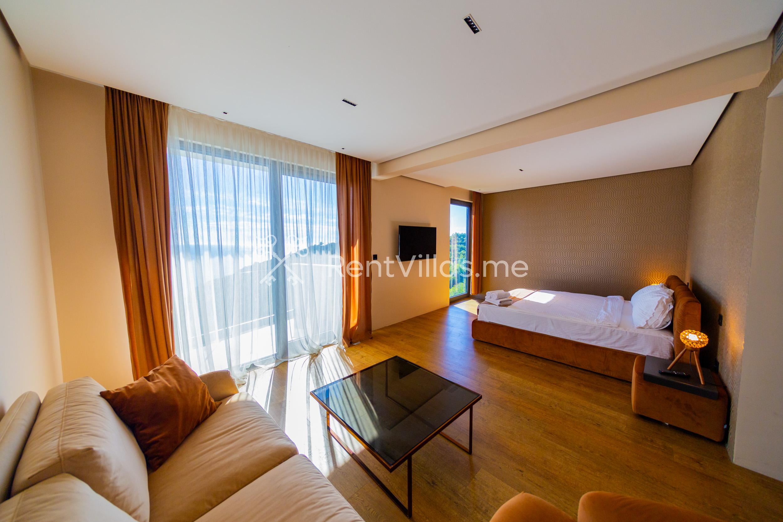 Vile odišu svjetlošću i prostranošću – otvoreni dnevni boravci s modernim enterijerom, elegantne trpezarije i potpuno opremljene kuhinje stvaraju savršen prostor za zajedničke trenutke, druženje i kulinarsko uživanje. Svaka od pet spavaćih soba luksuzno je uređena i ima svoje privatno kupatilo, pružajući potpunu udobnost i privatnost svakom gostu. Pojedine sobe izlaze na balkon ili imaju velike panoramske prozore s kojih se pruža zadivljujući pogled na more – idealno mjesto da se probudite uz zlatnu svjetlost izlaska sunca.